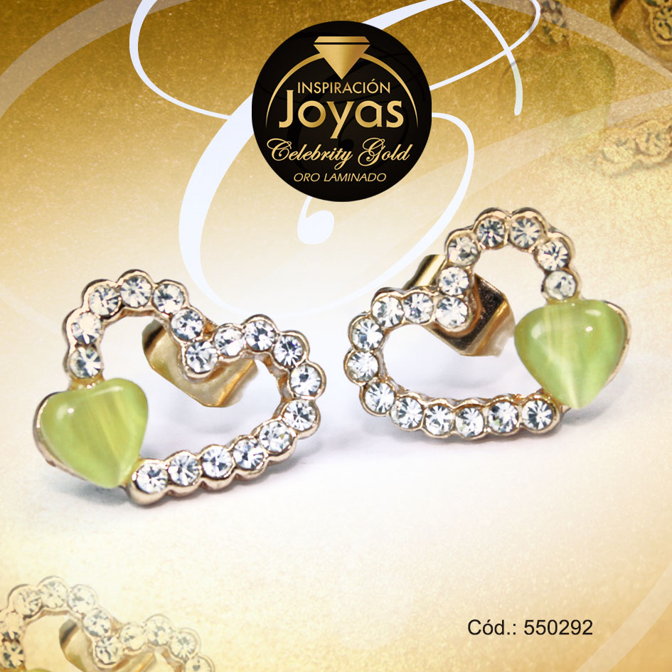 Zarcillo Celebrity Gold Tono Dorado Aleación Micro Circón Trancadero: Mariposa A: 1,2 cm L: 1 cm Corazón – 550292