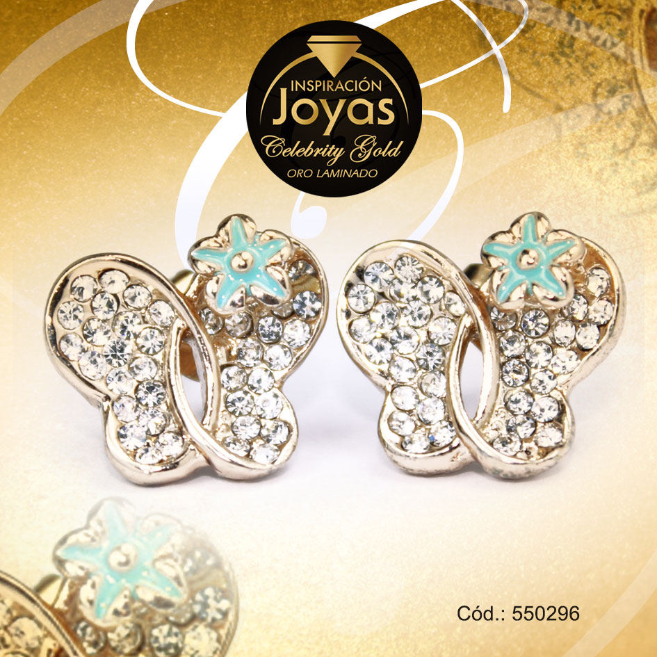 Zarcillo Celebrity Gold Tono Dorado Aleación Micro Circón Trancadero: Mariposa A: 1,3 cm L: 1,2 cm Mariposa – 550296