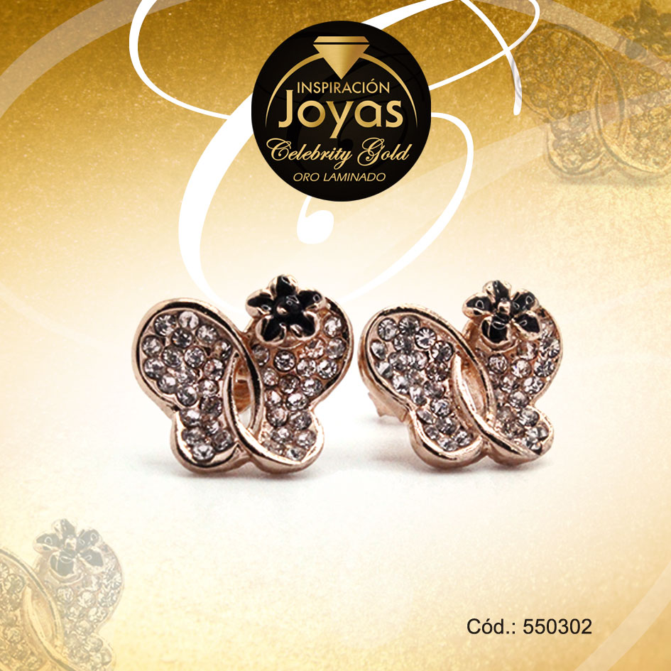 Zarcillo Celebrity Gold Tono Dorado Aleación Micro Circón Trancadero: Mariposa A: 1,3 cm L: 1,2 cm Mariposa – 550302