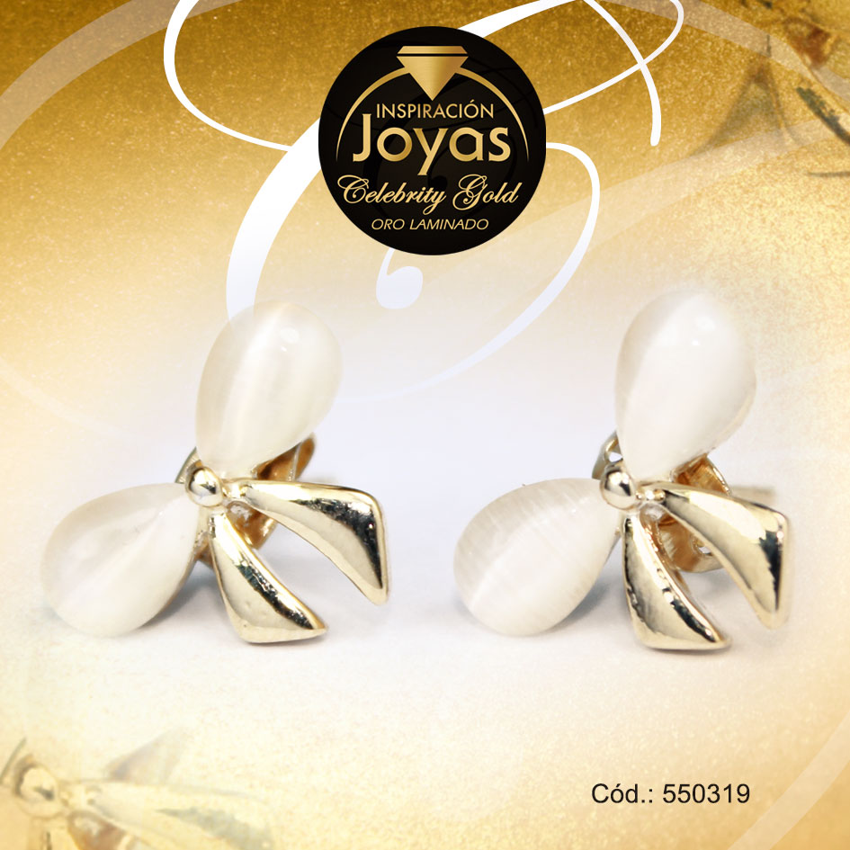Zarcillo Celebrity Gold Tono Dorado Aleación Nacar Trancadero: Mariposa A: 2 cm L: 1,2 cm Lazo Blanco – 550319