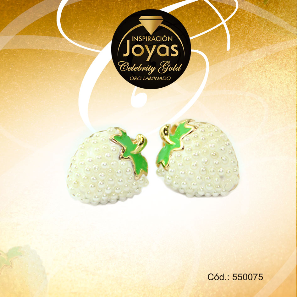 Zarcillo Celebrity Gold Tono Dorado Aleación Perla Trancadero: Mariposa A: 1 cm L: 1 cm Fresa Blanco – 550075