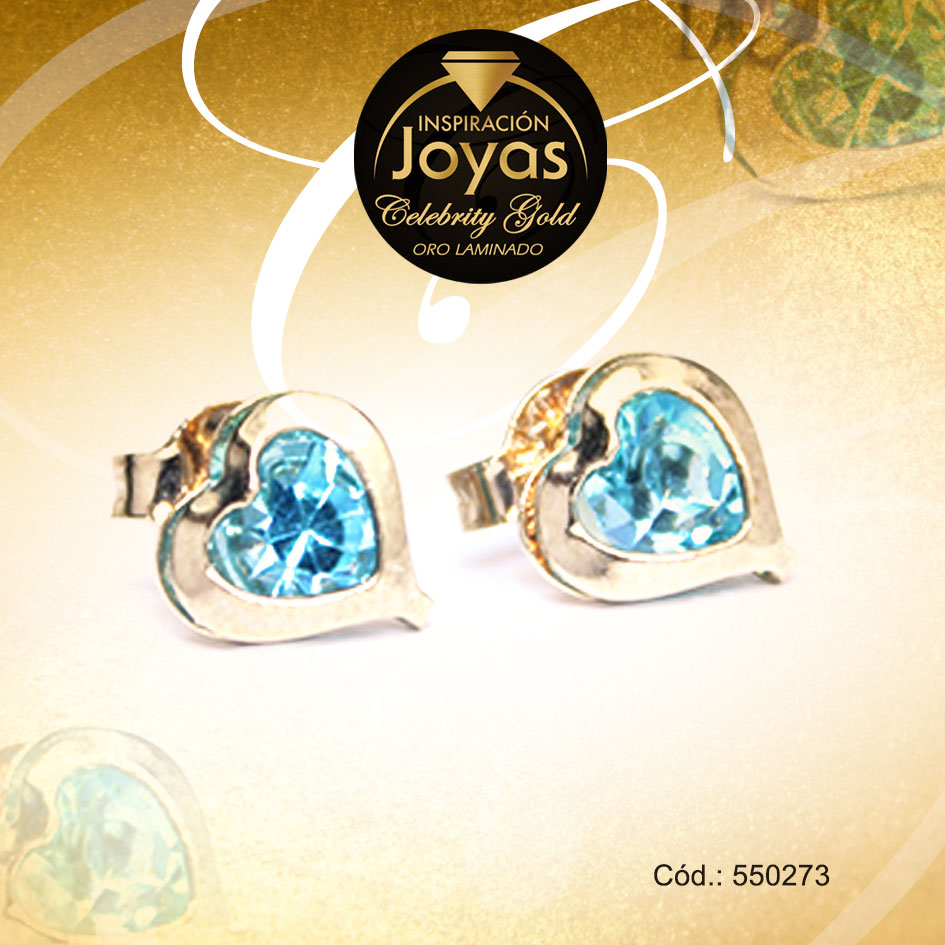 Zarcillo Celebrity Gold Tono Dorado Aleación Piedra Trancadero: Mariposa A: 0,5 cm L: 0,5 cm Corazón Azul – 550273