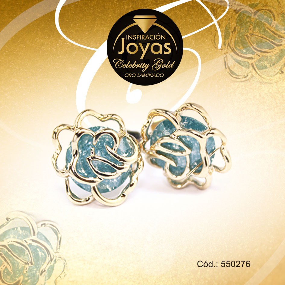 Zarcillo Celebrity Gold Tono Dorado Aleación Piedra Trancadero: Mariposa A: 1 cm L: 1 cm Flor Azul – 550276