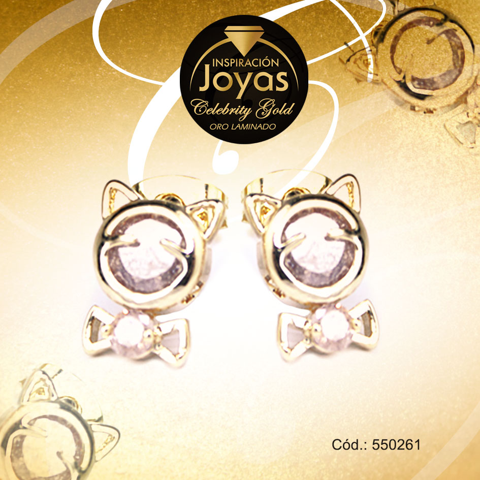 Zarcillo Celebrity Gold Tono Dorado Aleación Piedra Trancadero: Mariposa A: 1 cm L: 1 cm Gato Rosado – 550261