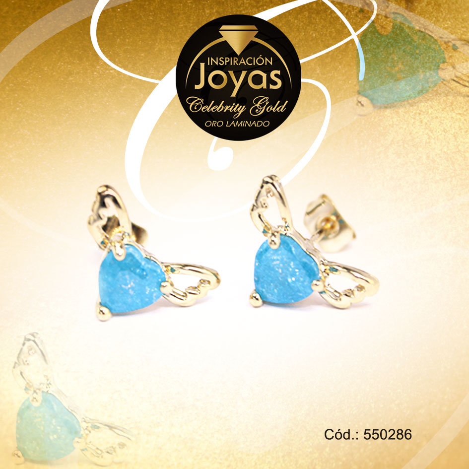 Zarcillo Celebrity Gold Tono Dorado Aleación Piedra Trancadero: Mariposa A: 1,5 cm L: 0,5 cm Corazón con Alas Turquesa – 550286