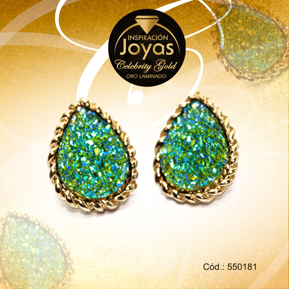 Zarcillo Celebrity Gold Tono Dorado Aleación Piedra Trancadero: Mariposa A: 1,7 cm L: 1,7 cm Óvalo Verde – 550181