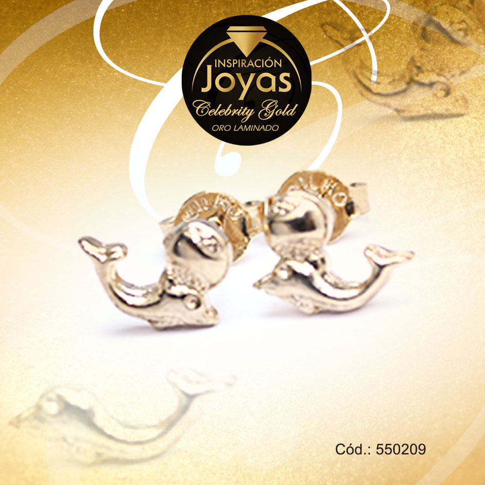 Zarcillo Celebrity Gold Tono Dorado Variado Trancadero: Mariposa A: 1 cm L: 0,3 cm Delfín – 550209