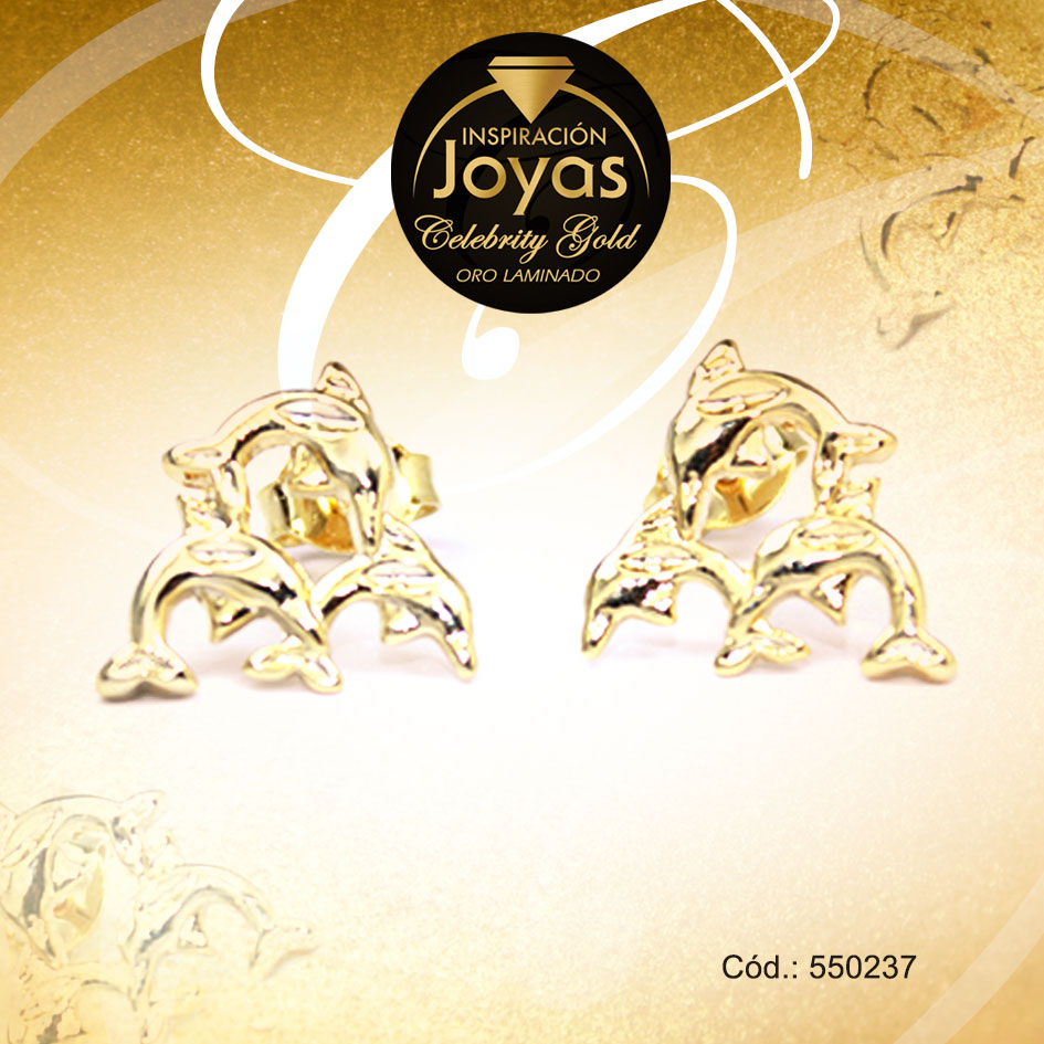 Zarcillo Celebrity Gold Tono Dorado Variado Trancadero: Mariposa A: 1,1 cm L: 1,1 cm Delfín – 550237