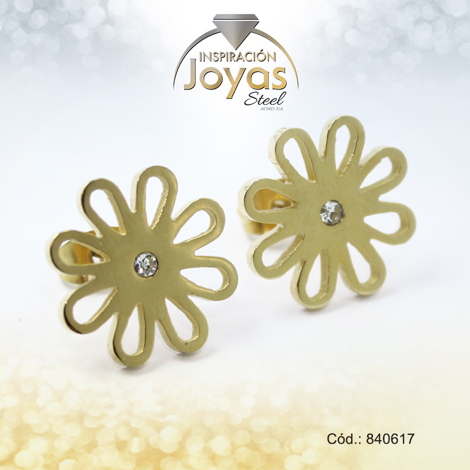 Zarcillo de Acero – Aleación Circón – Dorado – Flor – 840617