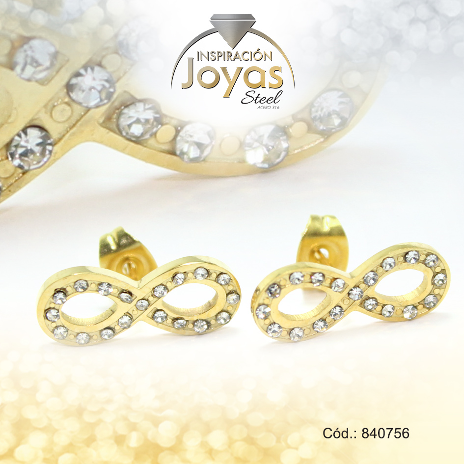 Zarcillo de Acero – Aleación Circón – Dorado – Infinito – 840756