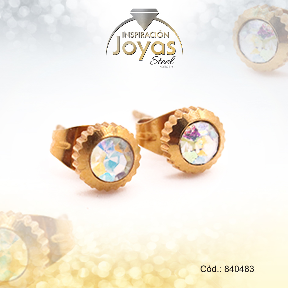 Zarcillo de Acero – Aleación Circón – Dorado – Solitario – 840483