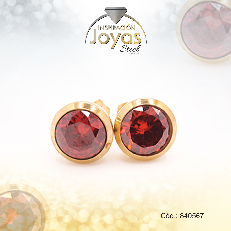 Zarcillo de Acero – Aleación Circón – Dorado – Solitario Rojo – 840567