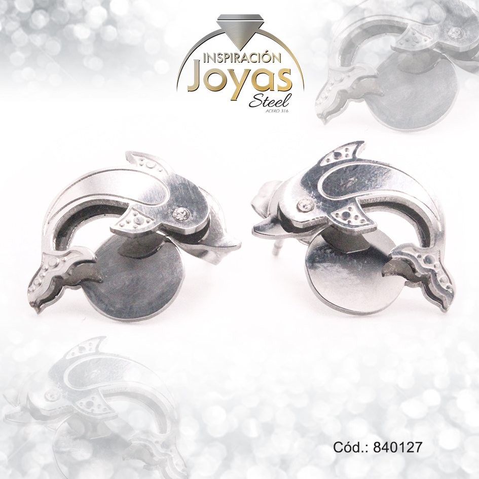 Zarcillo de Acero – Aleación Circón – Plateado – Delfín – 840127