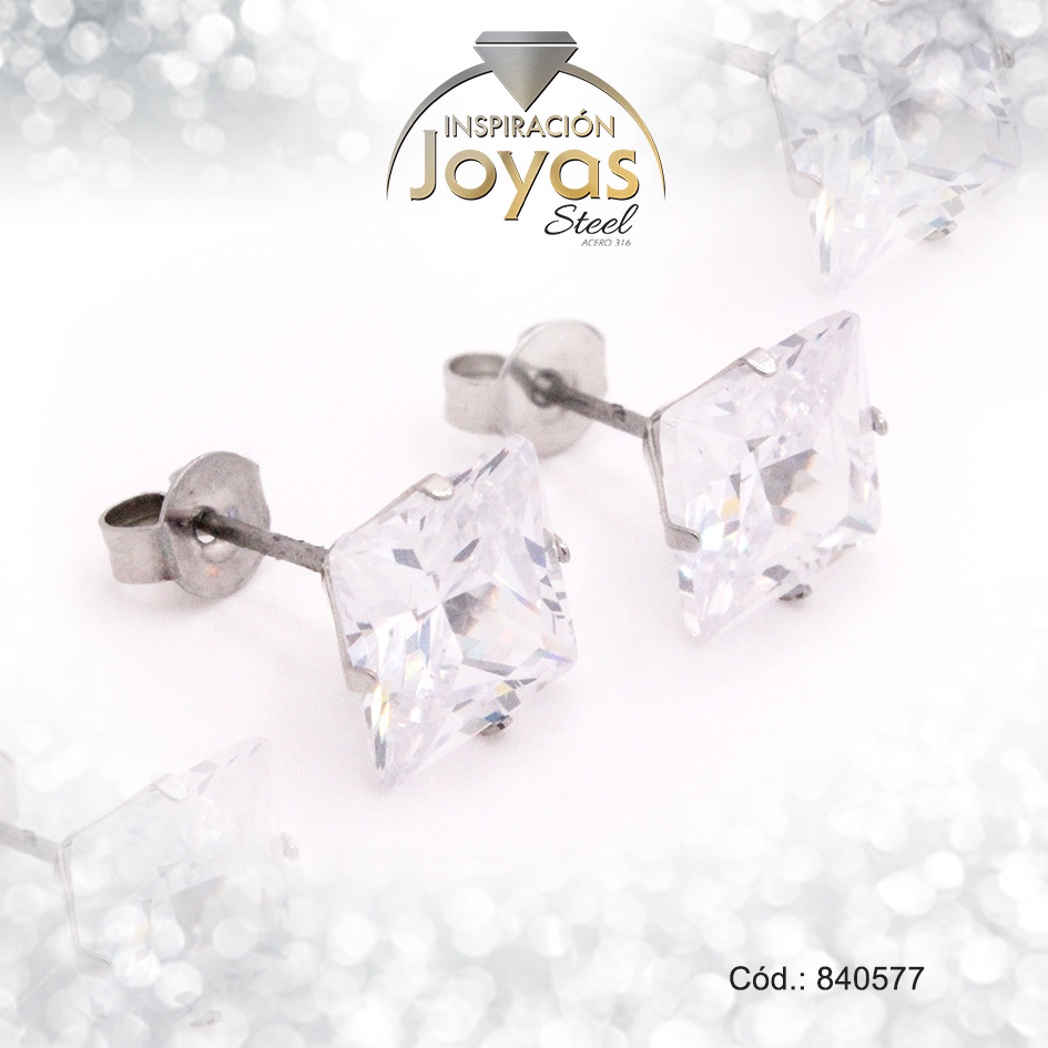 Zarcillo de Acero – Aleación Circón – Plateado – Solitario – 840577