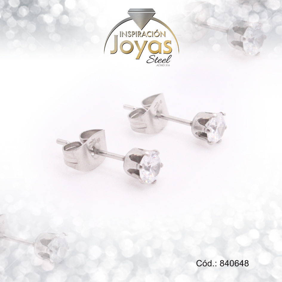 Zarcillo de Acero – Aleación Circón – Plateado – Solitario – 840648