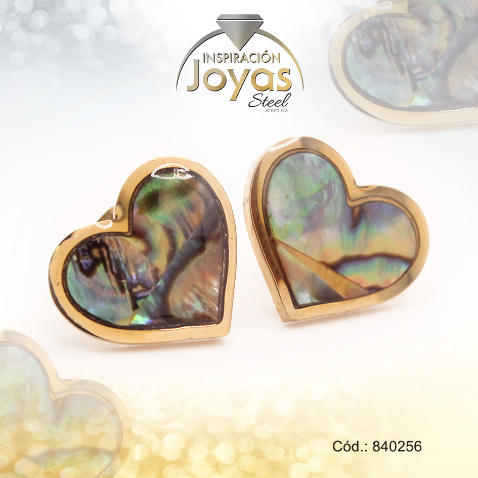 Zarcillo de Acero – Aleación Esmalte – Dorado – Corazón Multi Color – 840256