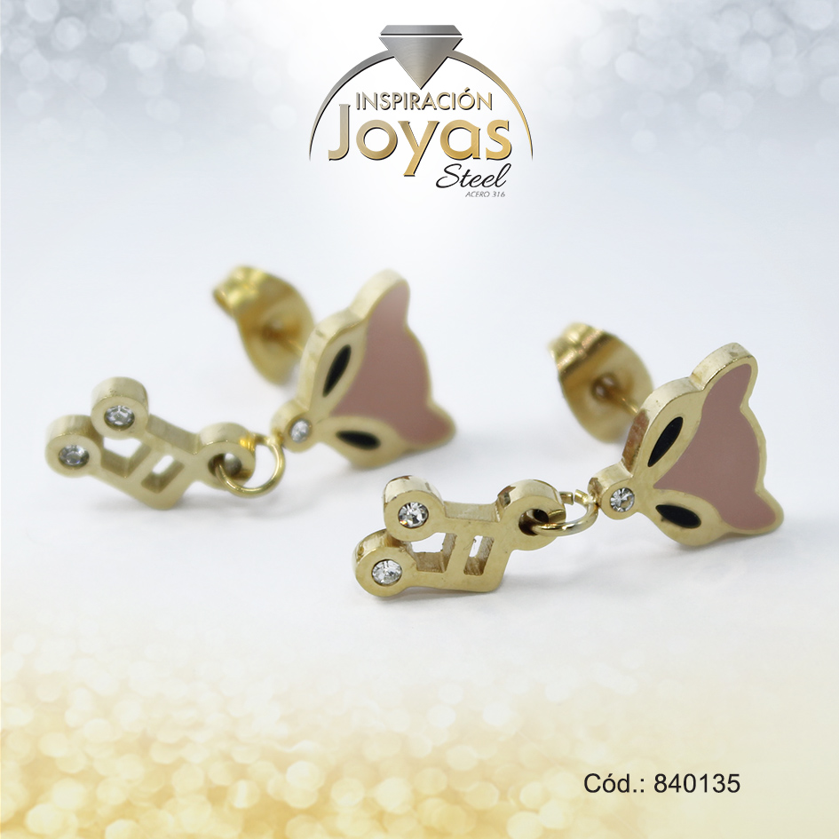Zarcillo de Acero – Aleación Esmalte – Dorado – Gato Rosado – 840135