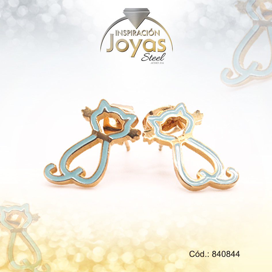 Zarcillo de Acero – Aleación Esmalte – Dorado – Gato Verde – 840844