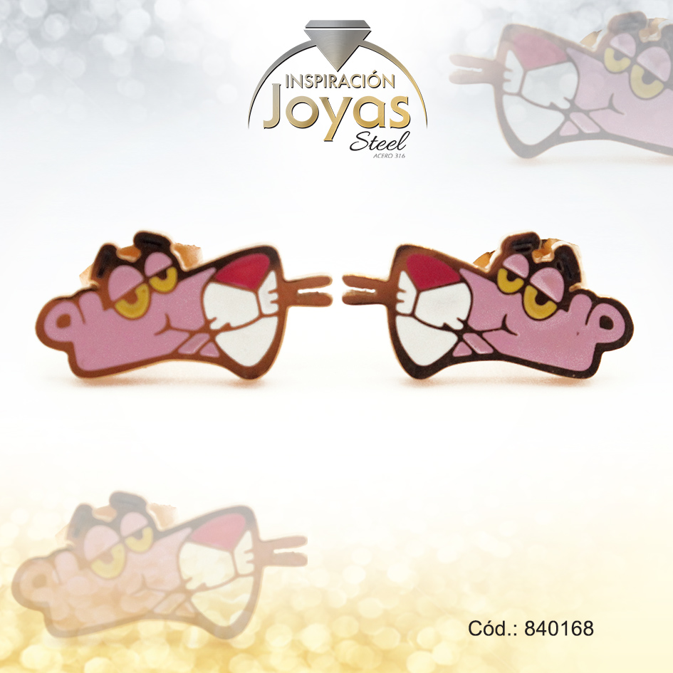 Zarcillo de Acero – Aleación Esmalte – Dorado – Pantera Rosa Rosado – 840168