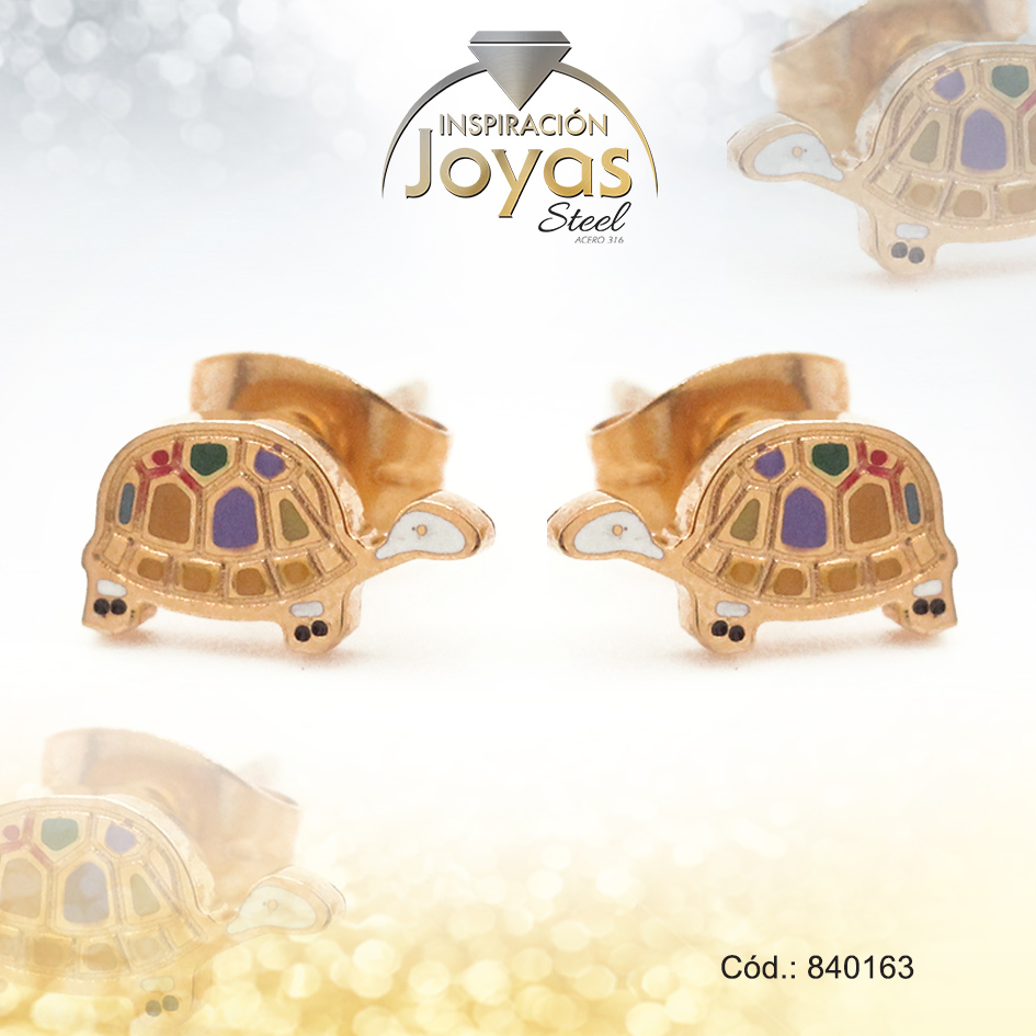 Zarcillo de Acero – Aleación Esmalte – Dorado – Tortuga Multi Color – 840163