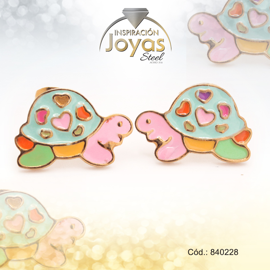 Zarcillo de Acero – Aleación Esmalte – Dorado – Tortuga Multi Color – 840228