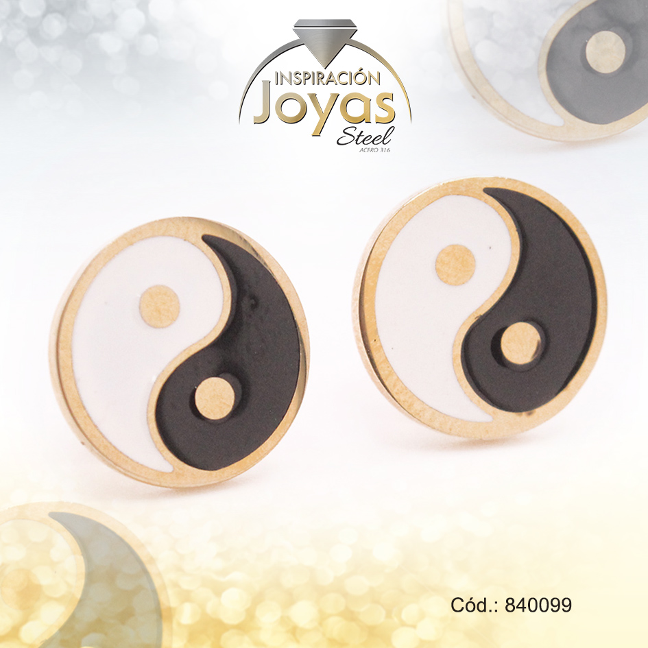 Zarcillo de Acero – Aleación Esmalte – Dorado – Yin Yang Blanco/Negro – 840099