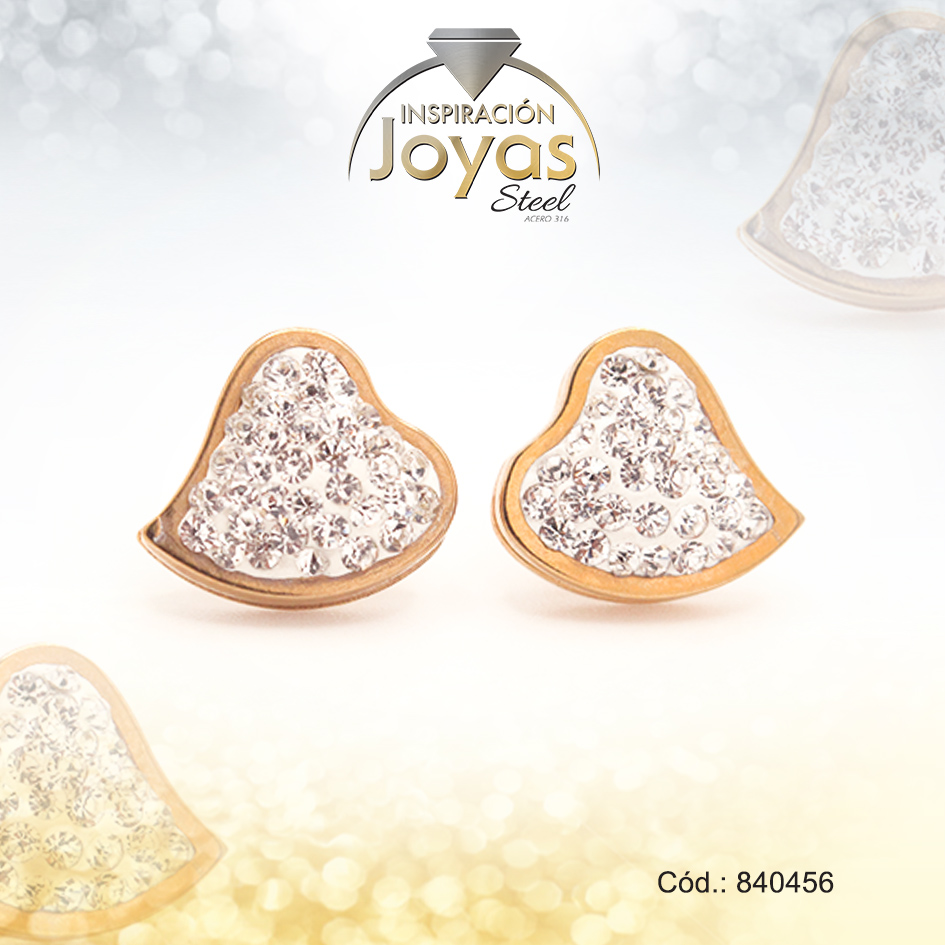 Zarcillo de Acero – Aleación Micro Circón – Dorado – Corazón – 840456