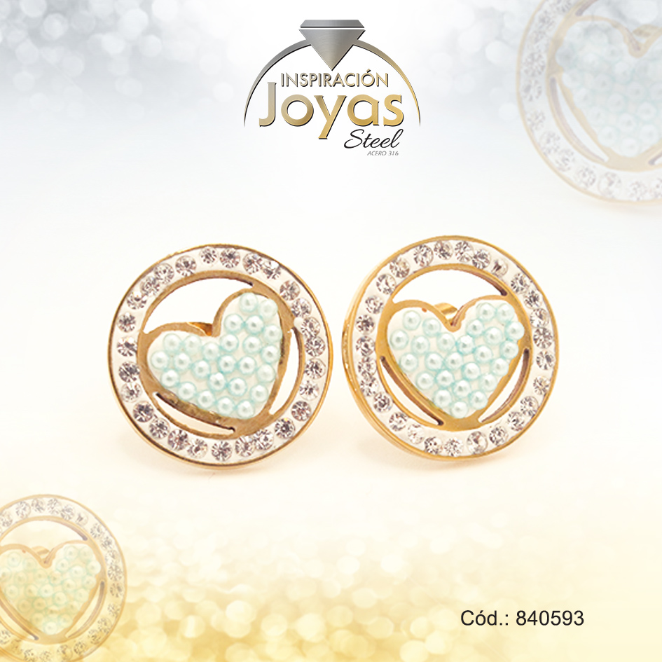 Zarcillo de Acero – Aleación Micro Circón – Dorado – Corazón – 840593