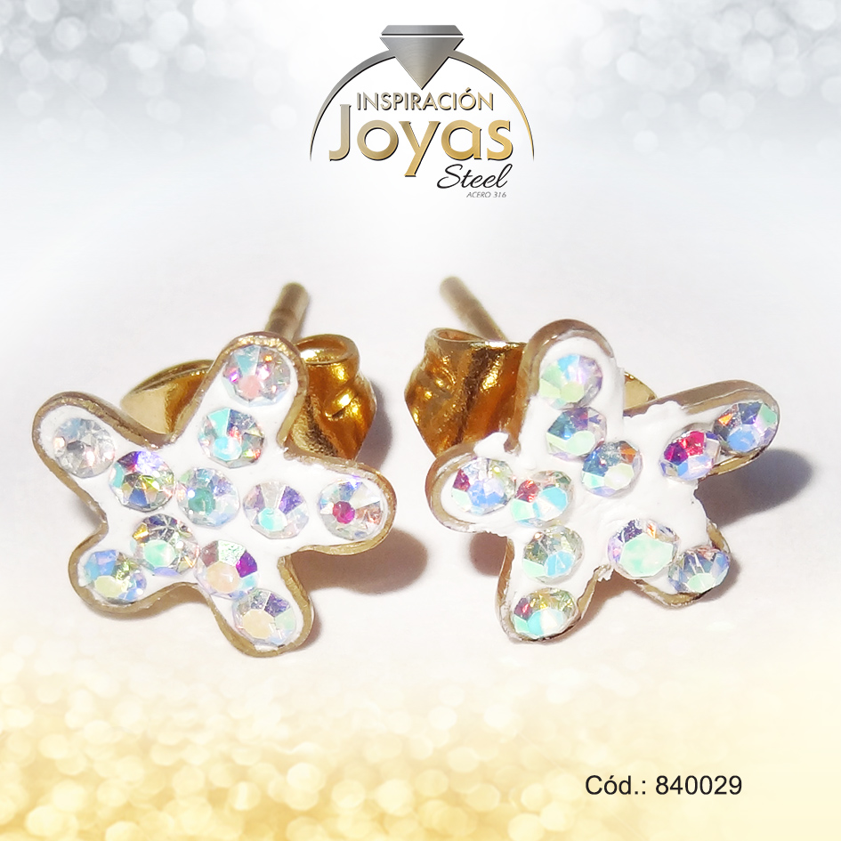 Zarcillo de Acero – Aleación Micro Circón – Dorado – Estrella – 840029