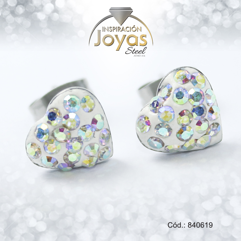 Zarcillo de Acero – Aleación Micro Circón – Plateado – Corazón – 840619