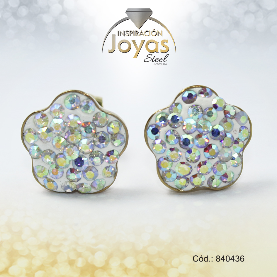 Zarcillo de Acero – Aleación Micro Circón – Plateado – Flor – 840436