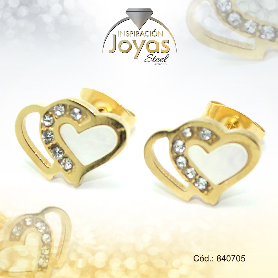 Zarcillo de Acero – Aleación Nacar – Dorado – Corazón – 840705