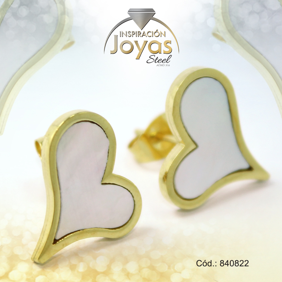 Zarcillo de Acero – Aleación Nacar – Dorado – Corazón – 840822