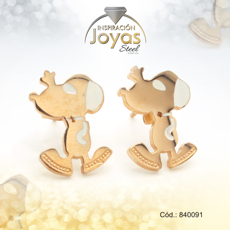 Zarcillo de Acero – Aleación Nacar – Dorado – Snoopy – 840091