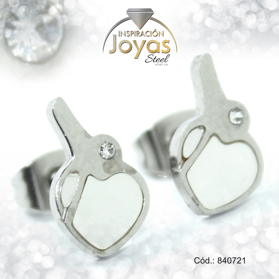 Zarcillo de Acero – Aleación Nacar – Plateado – Corazón – 840721