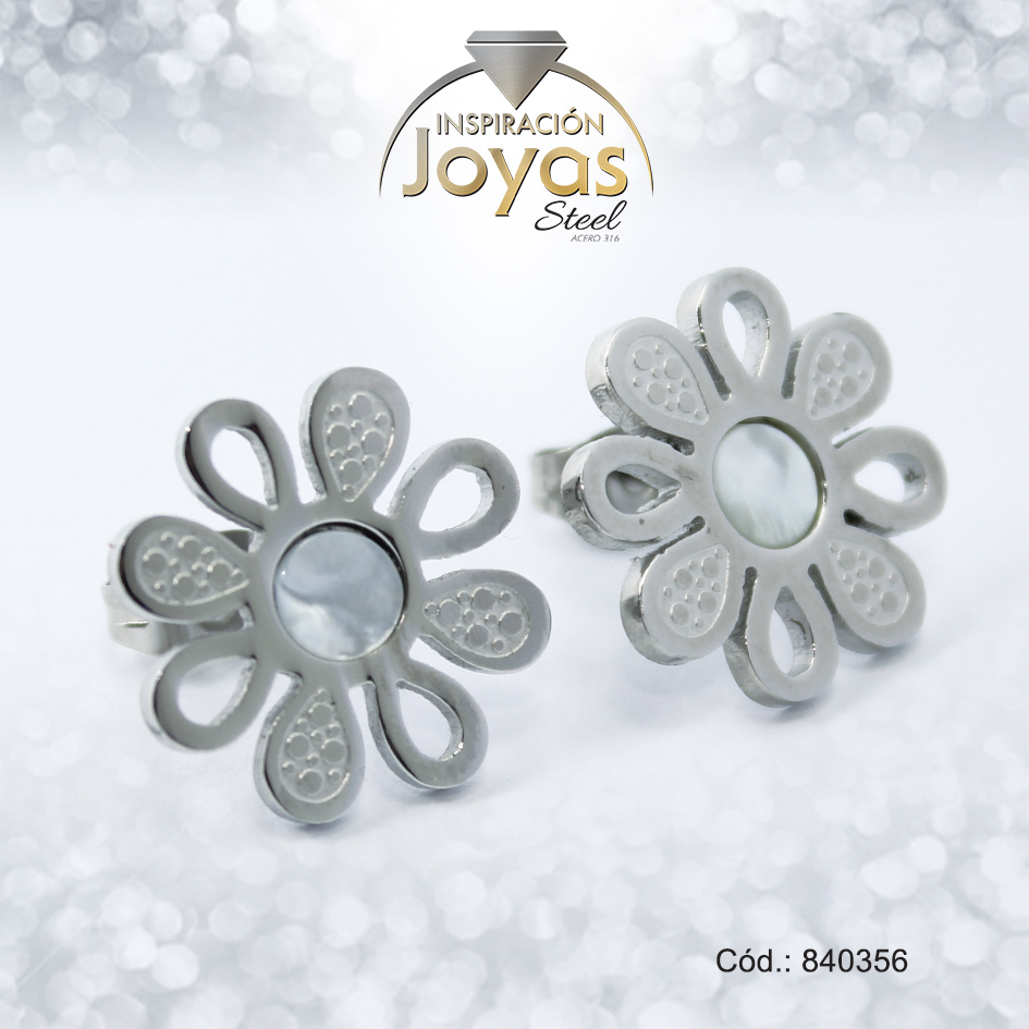 Zarcillo de Acero – Aleación Nacar – Plateado – Flor – 840356