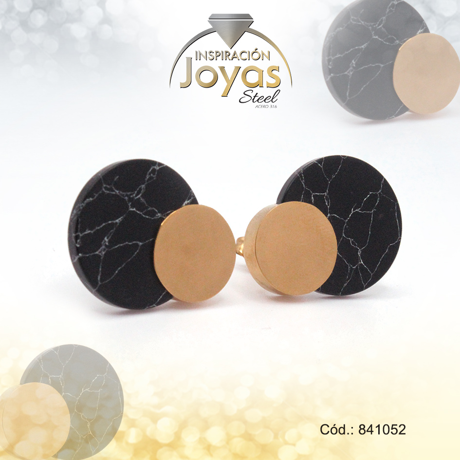 Zarcillo de Acero – Aleación Piedra – Dorado – Círculo Negro – 841052