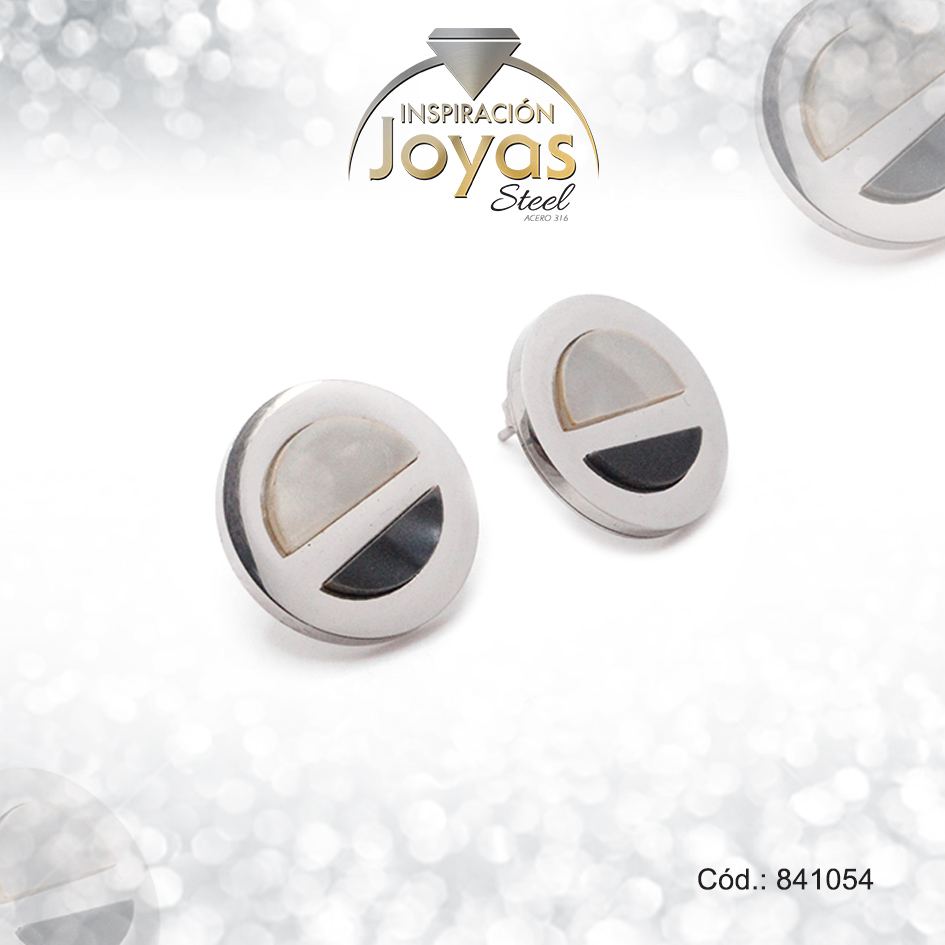 Zarcillo de Acero – Aleación Piedra – Plateado – Círculo Negro – 841054