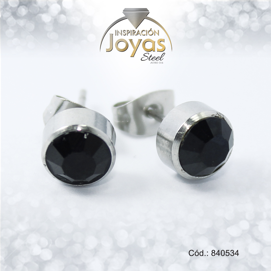 Zarcillo de Acero – Aleación Piedra – Plateado – Solitario Negro – 840534