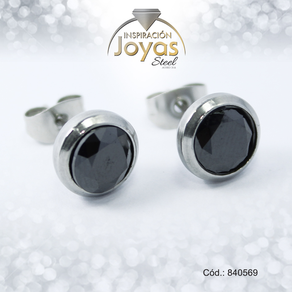 Zarcillo de Acero – Aleación Piedra – Plateado – Solitario Negro – 840569