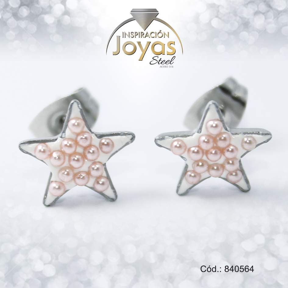 Zarcillo de Acero – Aleación Sintetico – Plateado – Estrella Rosado – 840564