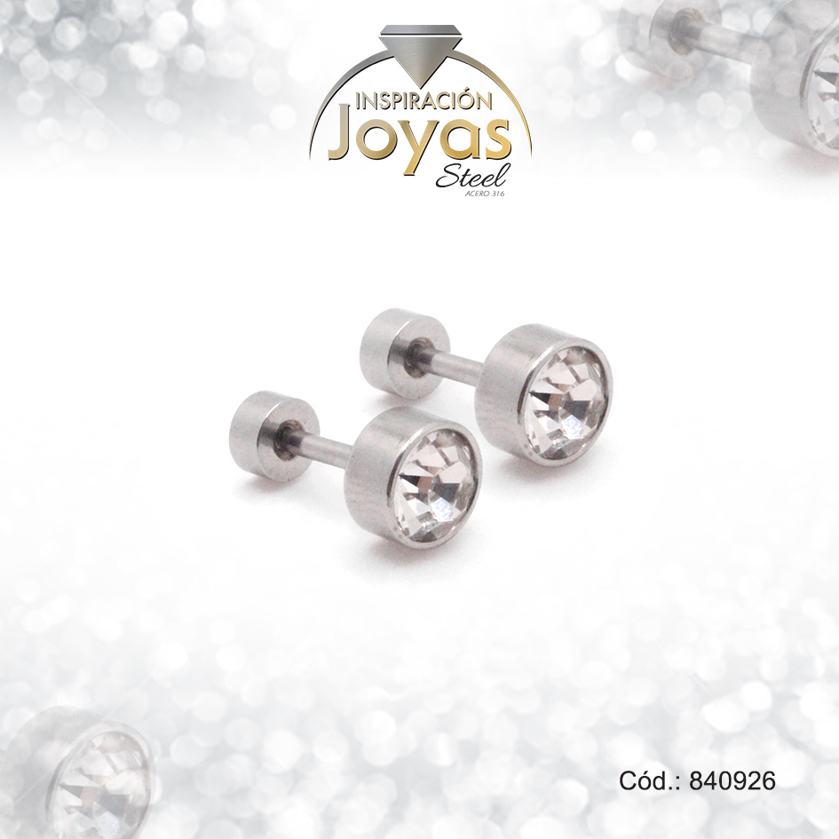 Zarcillo de Acero – Bebé Circón – Plateado – Solitario – 840926