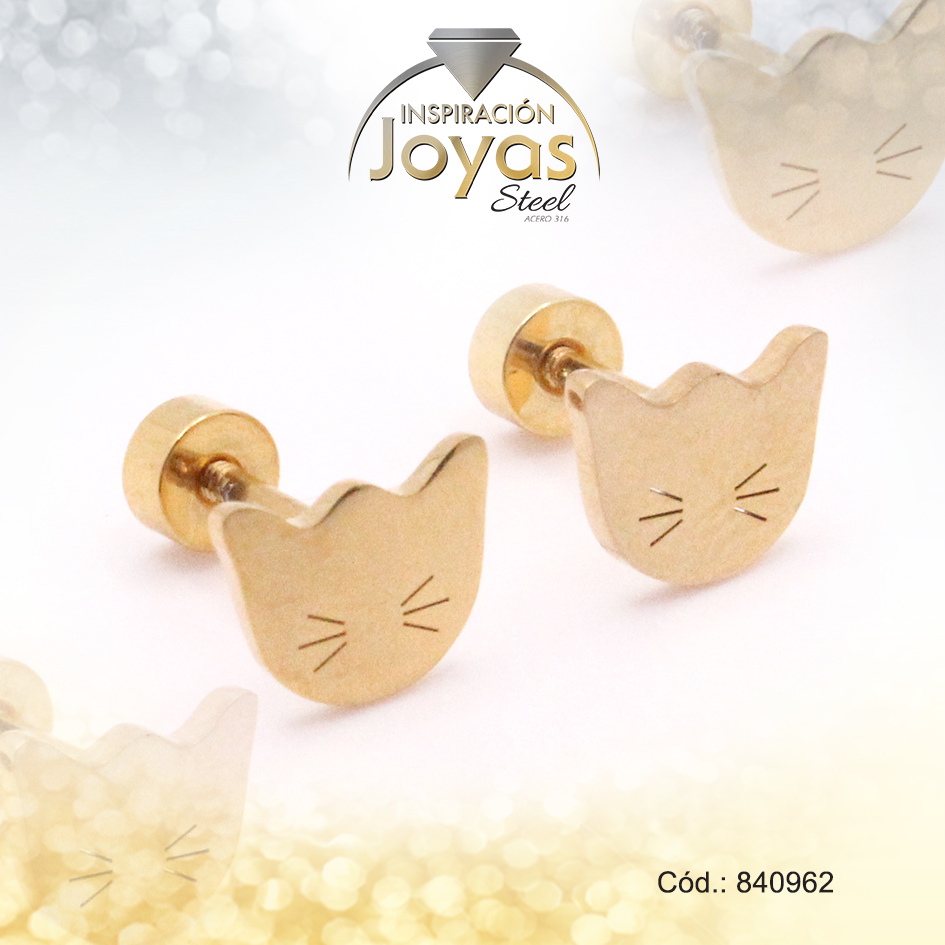 Zarcillo de Acero – Bebé – Dorado – Gato – 840962