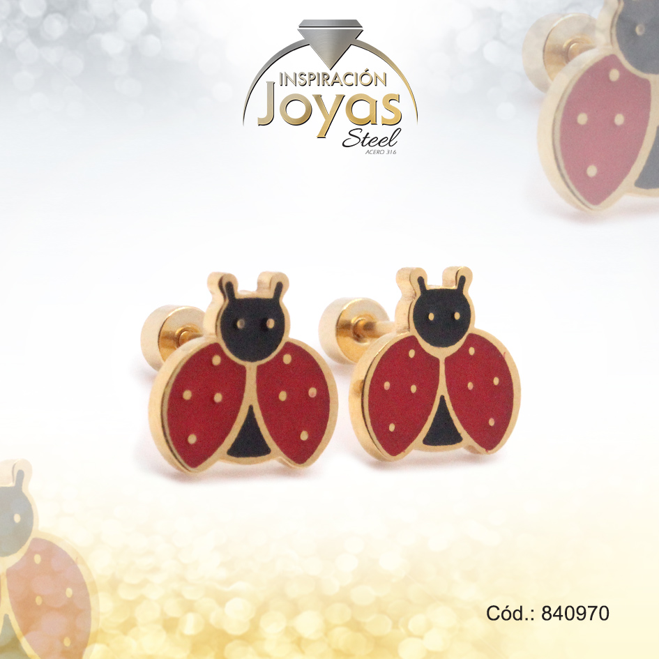 Zarcillo de Acero – Bebé Esmalte – Dorado – Mariquita – 840970