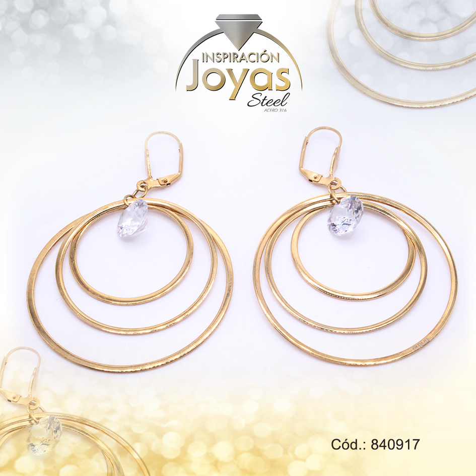 Zarcillo de Acero Colgante Circón Dorado Círculo – 840917