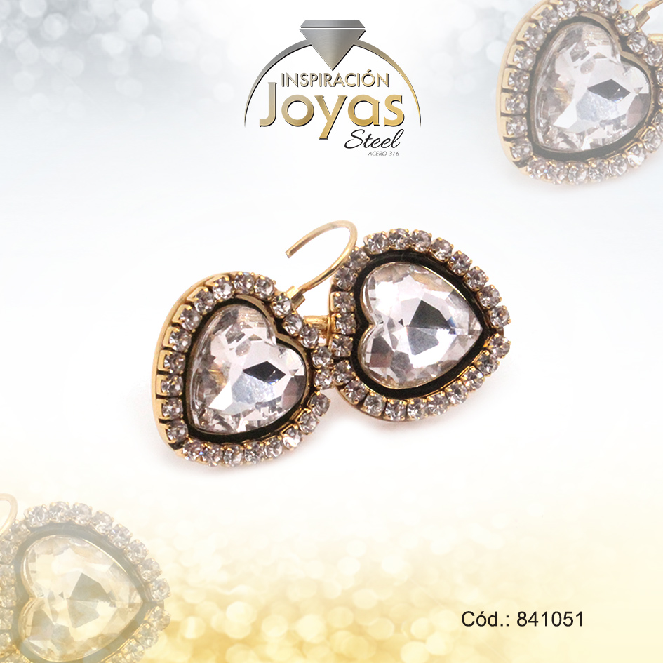 Zarcillo de Acero Colgante Circón Dorado Corazón – 841051