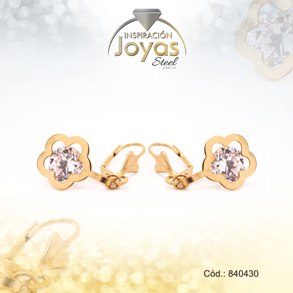 Zarcillo de Acero Colgante Circón Dorado Flor – 840430