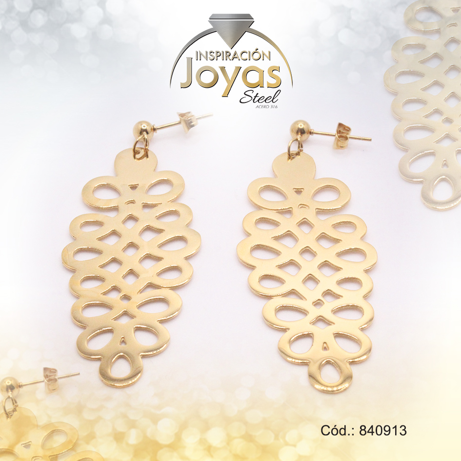 Zarcillo de Acero Colgante Dorado Hoja – 840913