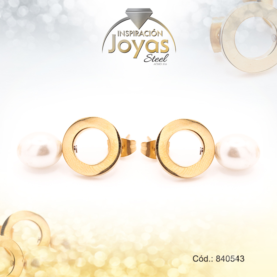 Zarcillo de Acero Colgante Perla Dorado Círculo – 840543