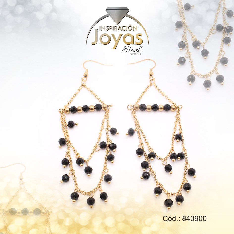 Zarcillo de Acero Colgante Piedra Dorado Cadenas – 840900